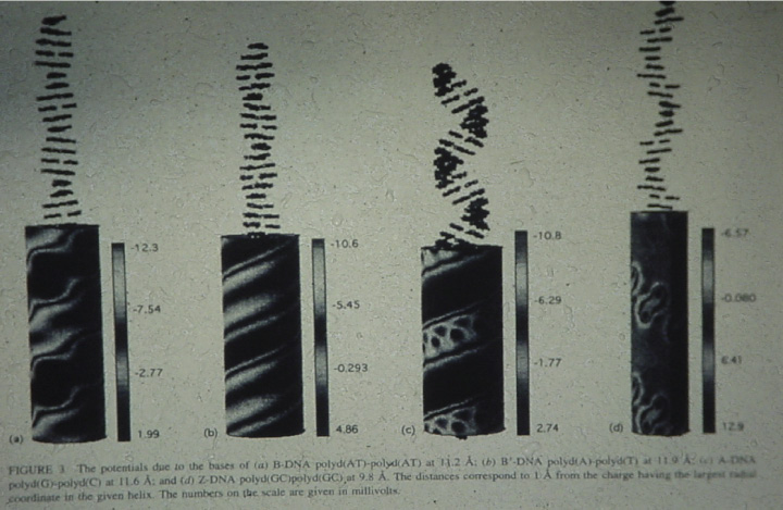 Genetická vlákna, ukázaná na obr. níže, byla publikována v žurnálu Science. Tyto fotografie ukazují elektrický potenciál DNA studovaný genetiky z kalifornské univerzity v Berkeley. Horní fotografie zobrazuje DNA, která se koupe v energeticky aktivní strukturované (seskupené) vodě. Tyto hydroelektrifikované dvojité spirály mají mnohem větší energetické potenciály, než ta samá vlákna DNA zobrazená pod nimi. Tento rozdíl způsobila dehydratace.