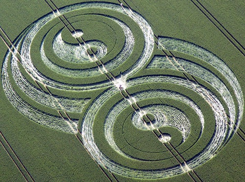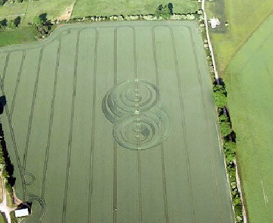 Také stojí za povšimnutí, že kruhy v obilí se zde řadí na stopách farmářova traktoru, jako celé tóny napsané na notovém listu. Rovněž jsou zde obsaženy prvky odpovídající hudebnímu houslovému klíči. Kruh v obilí představuje 528, „MI“ či MIracle tón v původní Solfeggio hudební stupnici, který se rovná „6“ (5 + 2 + 8 = 15; 1 + 5 = 6). Vidíte v obilných kruzích ty veliké šestky (rovněž vykreslující symboly jin/jang)? Tón „FA“ znamená FAmily mající frekvenci 639, respektive „9“ (6 + 3 + 9 = 18; 1 + 8 = 9). Najděte v obilných kruzích devítky. Tyto dva tóny, „MI“ a „FA“ v srdci původní stupnice Solfeggio, skýtají symbol „69“ (jin/jang) všeobecně odrážející polaritu a rovnováhu. Otáčející se číslice „8“, která je zde taktéž nápadná, předává strukturu vesmíru a znak nekonečna.