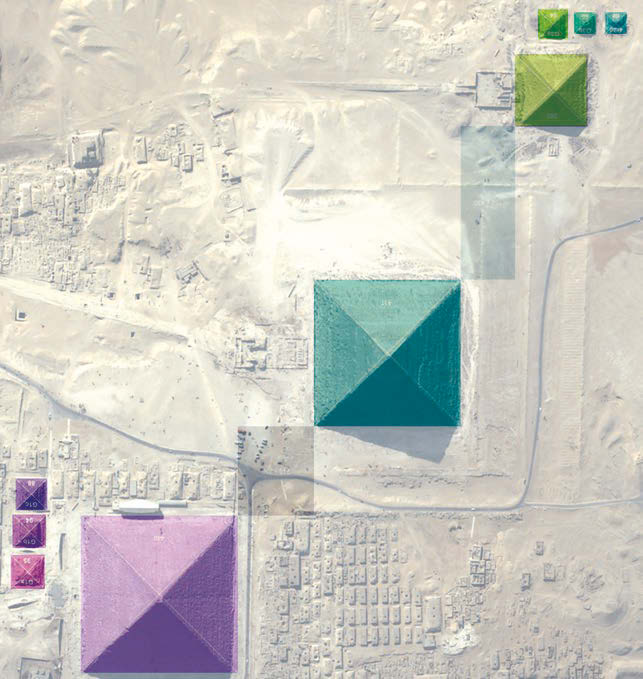 Navíc, vezmete-li výšku Velké pyramidy a vynásobíte ji 432 000x, získáte přesnou velikost polárního poloměru Země. Pokud změříte základní obvod pyramidy a vynásobíte jej 432 000x, získáte přesnou velikost rovníkového obvodu Země. To nemůže být náhoda už kvůli použitému měřítku: 1- 432 000. Toto je číslo trvale přítomné v mytologiích, starověkých textech a prastarých příbězích po celém světě. Můžeme s jistotou trvat na tom, že konkrétní orientace památek v Gíze měla svůj význam. Můžeme také (s ohledem na fakta) s jistotou předpokládat, že tři pyramidy a Sfinga ve vztahu k řece Nil jsou přesným a symbolickým znázorněním – kopií a pozemským zopakováním hvězdné oblohy nad Egyptem, jak se mohla jevit přibližně před 12 500 lety.