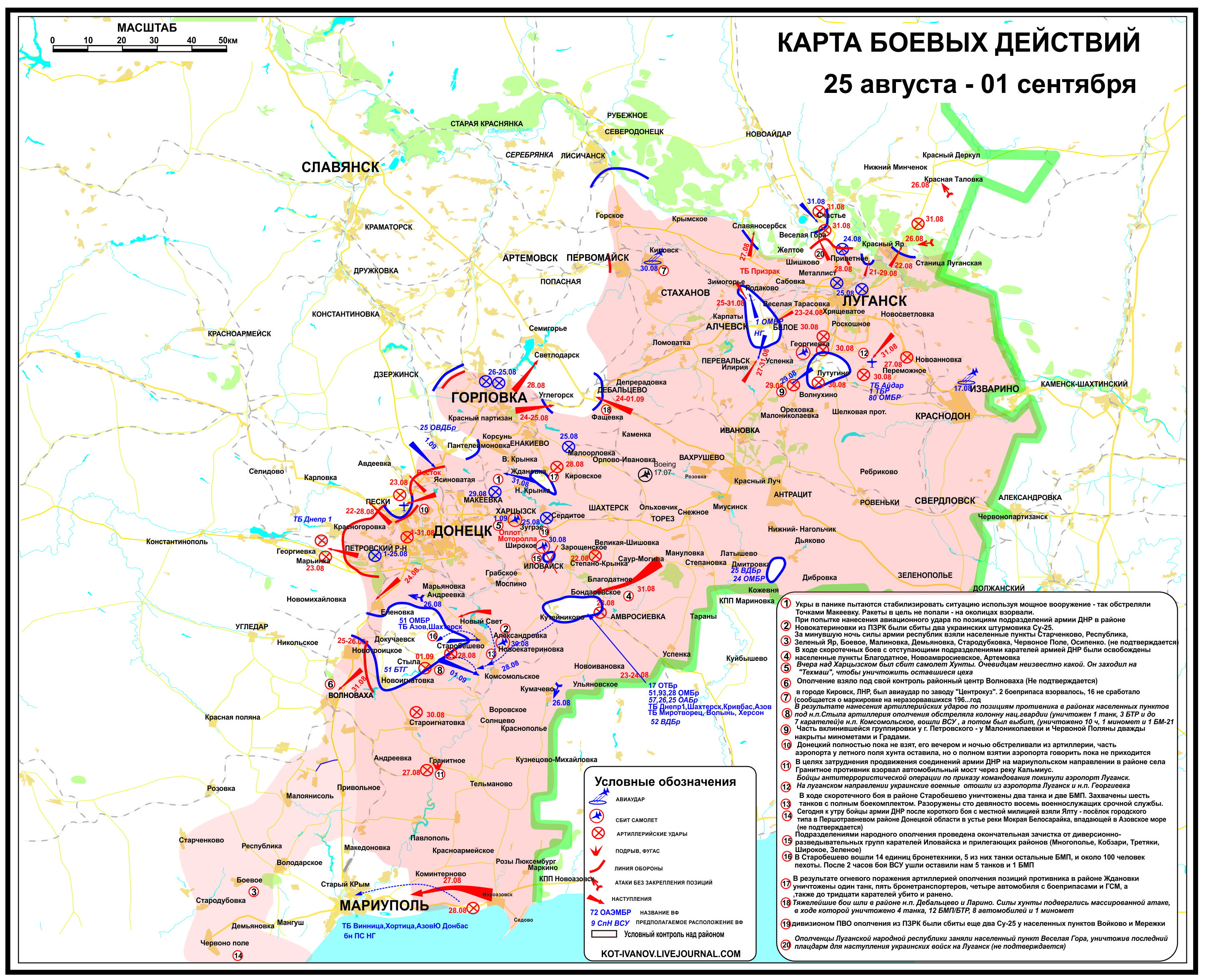 Analýza situace na bojišti z 2. 9. 2014 k 21:30 hodin (viz sekve videa).