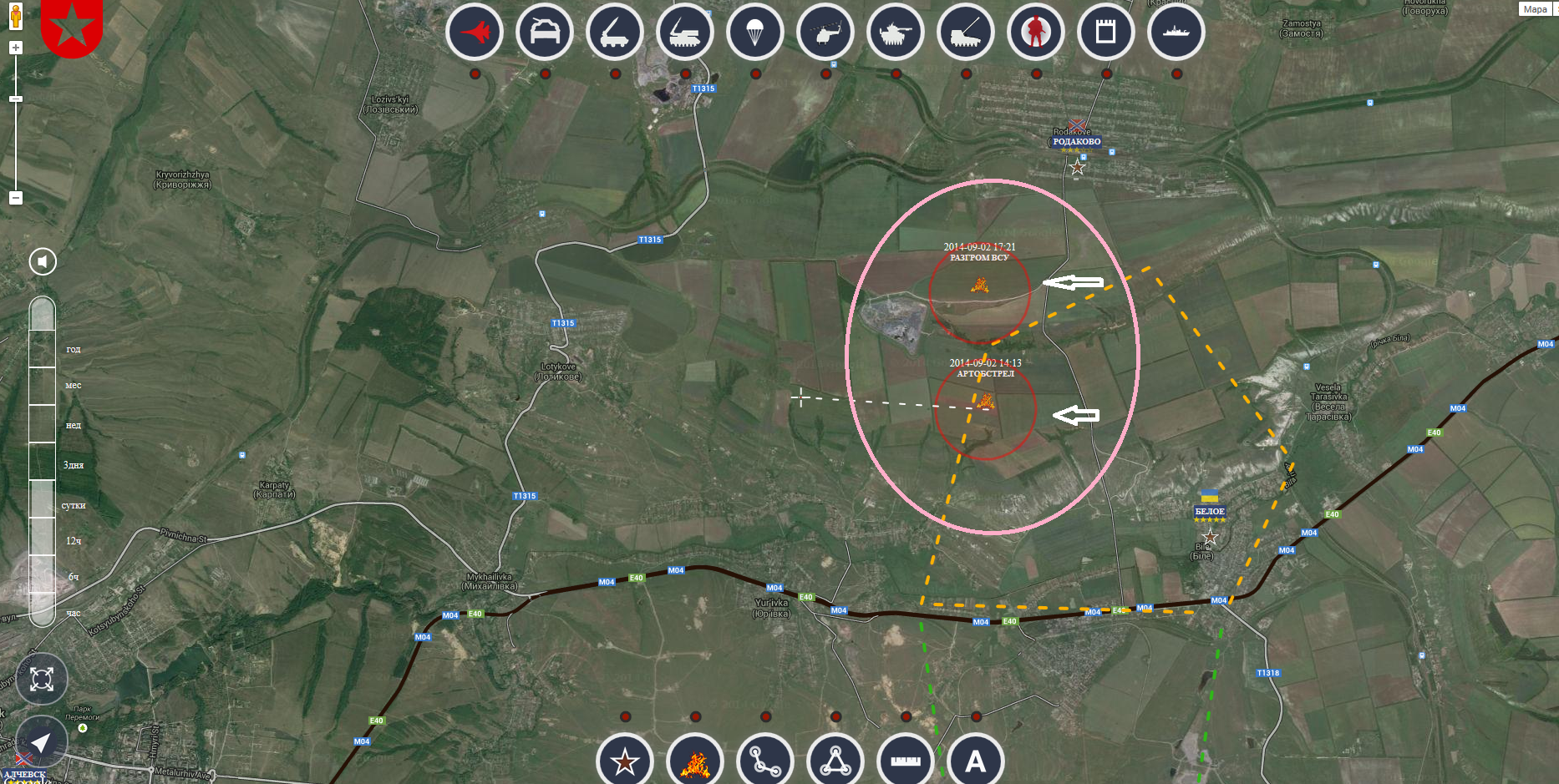 Průzkumné skupiny povstalců dnes ráno objevily v trojúhelníku mezi body Родаково, Юрьевка, Беленькое akumulaci velkého množství vojenské techniky různého druhu. Technika ukrajinské armády byla v dlouhé linii roztažena v průsmyku směrem na Родаково, takže byla z vizuálního hlediska poměrně dobře chráněná.