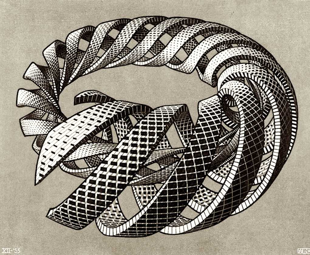 Starověký kosmologický koncept ouroborosu, neboli hada „požírajícího svůj ocas“, představuje vizuální metaforu znázorňující neviditelné vlnové struktury planetární rezonance obklopující Zemi. Tento koncept byl také zakomponován do toroidální elektromagnetické spirály, kterou velkolepě ztvárnil M. C. Escher ve dřevorytu z roku 1953 (viz. výše). Escherovy transdimenzionální obrazy se hluboce zabývají kvantovým aspektem časoprostorového kontinua.