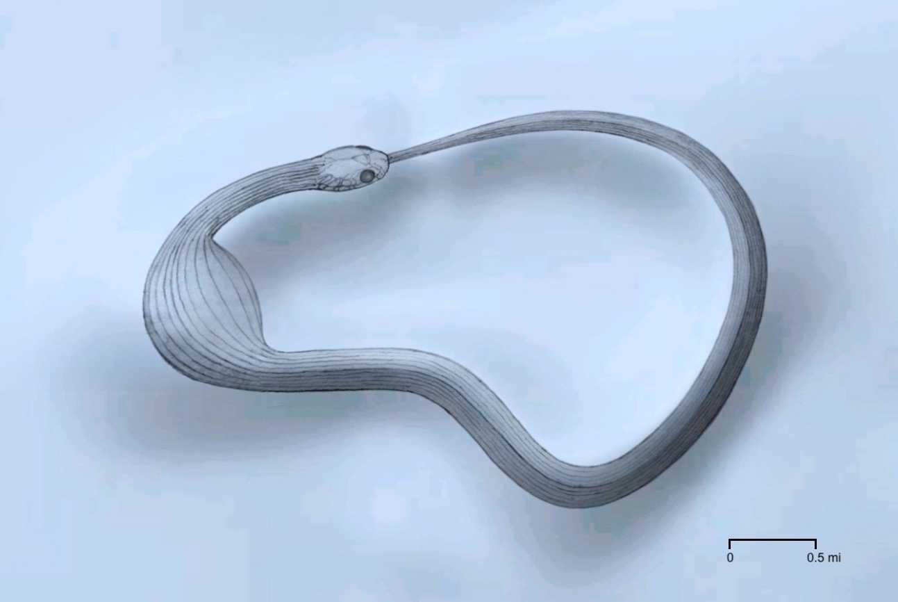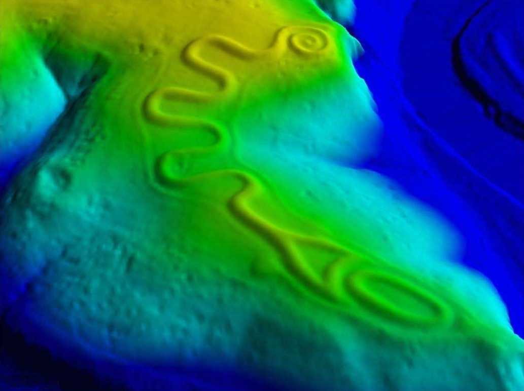 Posvátná hadí ikonografie chrámu Coatzlmundi u jezera Superior nachází odezvu ve starověké zemní stavbě Serpent Mound v Ohiu (LiDAR sken níže), která zobrazuje hada s ústy obklopujícími vejce. Navzdory úplnému zamlžování ze strany archeologických institucí tento posvátný motiv využívá geometrické reprezentace z říše zvířat k zprostředkování vysoce pokročilých mikrobiologických znalostí týkajících se neviditelných buněčných interakcí spermií a vajíček, k nimž dochází v děloze v rozhodujícím okamžiku početí lidského plodu.