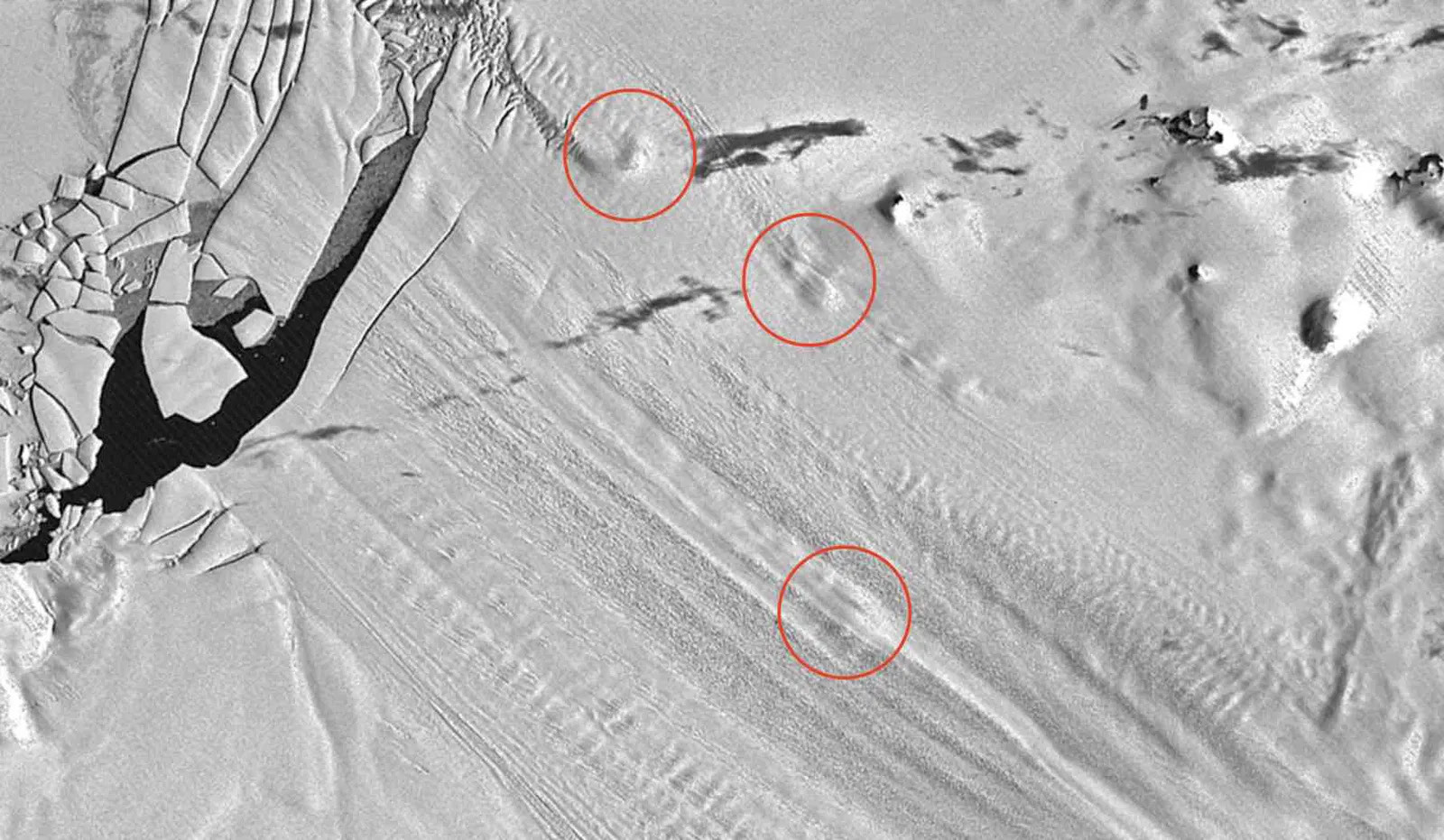 Několik satelitních fotografií pořízených nad Antarktidou v roce 1964 zdánlivě ukazuje zbytky staveb pod ledem, ale nikdo si není jistý, ke které civilizaci tyto budovy patří. Může se jednat o opuštěné stavby z 20. století, nebo mohou být mnohem starší – někteří se domnívají, že o stovky nebo dokonce tisíce let starší. Pouze přístup k dalším digitalizovaným satelitním snímkům Antarktidy, které zatím nejsou k dispozici, pomůže identifikovat, co tyto podivné tvary pod ledem mohou být. Je možné, že satelit Corona CIA pořídil dřívější snímky Evropy, Sovětského svazu a Antarktidy, ale tyto snímky dosud nebyly zveřejněny. Dosud bylo naskenováno pouze asi 5% snímků z programu Corona a digitalizace každé fotografie stojí 30 dolarů. Může tedy nějakou dobu trvat, než budou všechny snímky k dispozici pro studium.