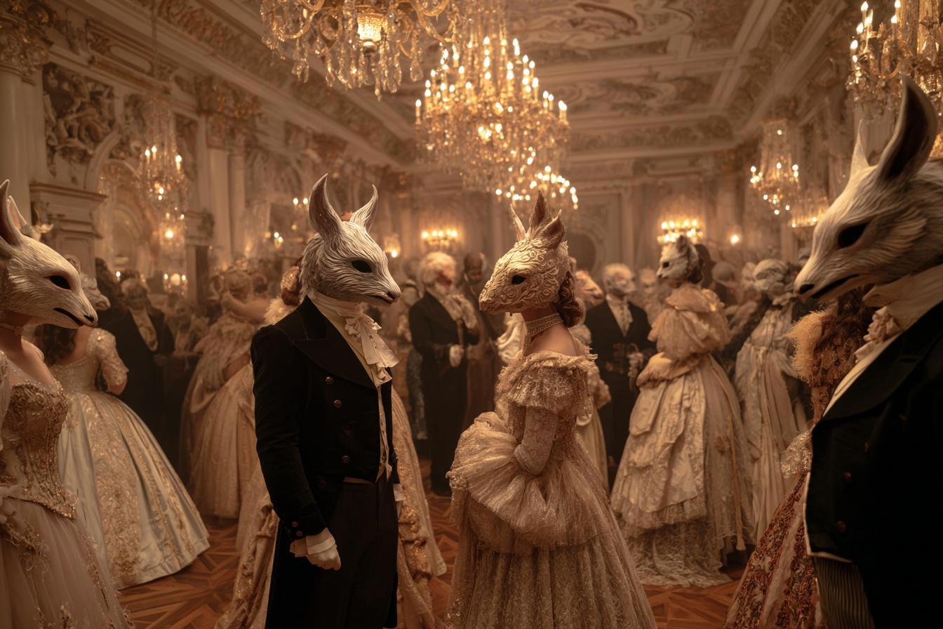 Ještě zajímavější je, že budova, ve které se tato bizarní párty odehrává, vypadá jako znázornění nechvalně známého plesu pořádaného rodinou Rothschildů, konkrétně plesu pořádaného baronem Guyem a baronkou Marie-Helene de Rothschild v jejich sídle Chateau de Ferriers nedaleko Paříže ve Francii v roce 1972. O této surrealistické události víme díky fotografiím, které se s příchodem internetu dostaly na internet. Tyto fotografie jsou kombinací bizarních a ponurých obrazů. Účastníci například nosí bizarní masky, od děsivých zvířecích hlav až po falešné klece.
